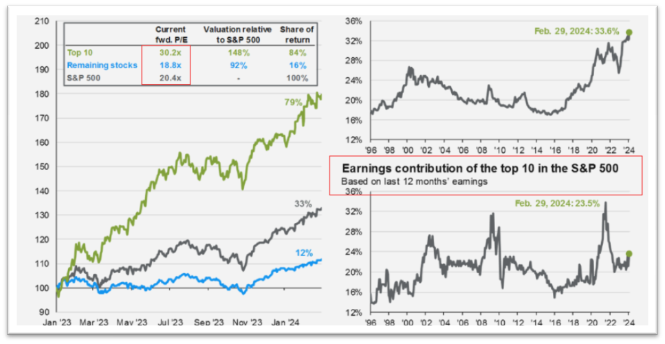 대형 기술주가 S&P 500 밸류에이션에 미치는 영향을 살펴보는 것도 흥미롭습니다. 다음은 JP Morgan의 차트입니다.