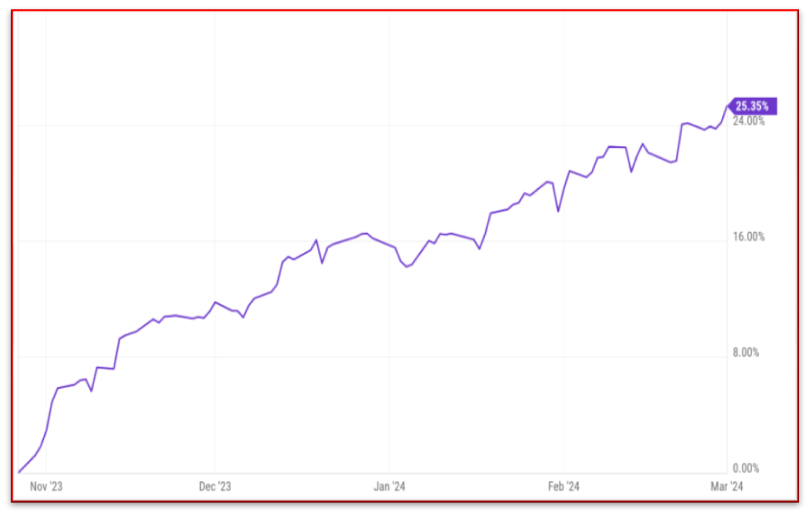 S&P 500은 지난해 10월 말 10%의 급격한 조정을 기록한 이후 25% 이상 상승했습니다.