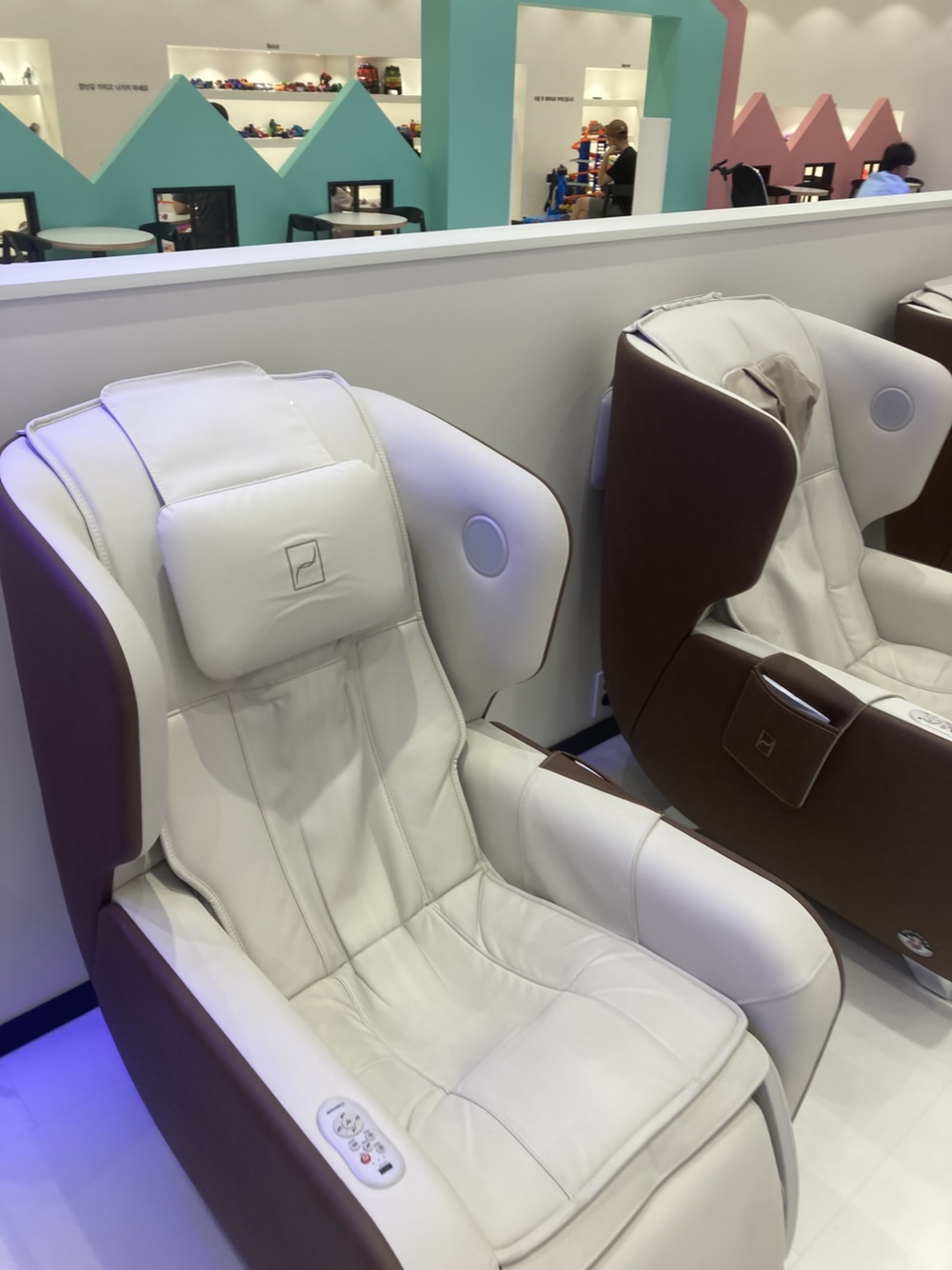 부모님을 위한 카페존은 넓고 쾌적하며, 커피·음료·디저트뿐만 아니라 간단한 식사 메뉴도 제공합니다. 각 테이블에 콘센트가 있어 스마트폰 충전이나 업무도 가능해요.